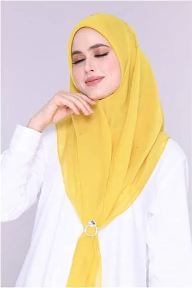 Penggunaan kain ‘voil’ berkualiti tinggi yang diimport dari Jepun memastikan keselesaan dan ketahanan tudung. Kombinasi bahan premium dan hiasan mewah menghasilkan produk yang memenuhi standard tinggi pelanggan.